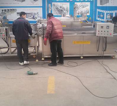 JTJML雞米花油炸生產線發貨現場 采用全不銹鋼制作,雙網帶輸送產品,變頻調速,定型板式網帶,防止變形,油水...